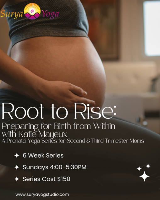 Katie now brings her integrated knowledge to Surya Yoga, offering prenatal classes that nurture the physical, emotional, spiritual, and energetic layers of motherhood. She is currently completing her certification as a Spinning Babies® Aware Practitioner and continues to serve birthing families with deep care and reverence.